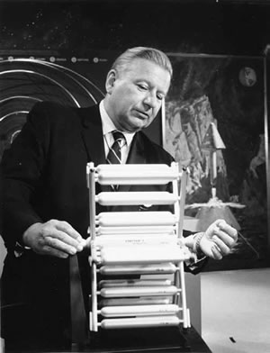 ![]() Space pioneer Krafft Ehricke (1917-1984) saw, in space travel and the colonization of the universe, the natural next phase of the evolution of mankind, and in the industrialization of the Moon, the springboard for man’s exploration of the Solar System and beyond. Here, he demonstrates how an orbital hospital might be designed. |