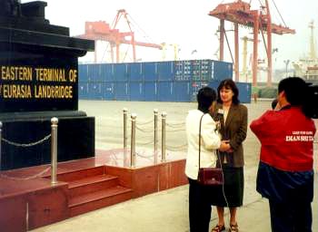 Helga Zepp LaRouche, Schiller Institute Founder and Chairwoman, at the Eastern Terminal of the Landbridge, in China, in 1996. |