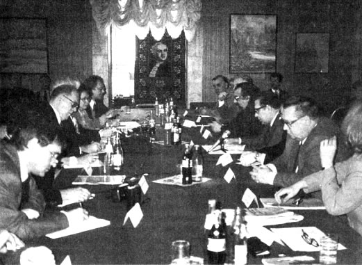 LaRouche also authors a written policy document for the conference, titled "A Precis: The Peaceful Concept of Technology Transfer" [PDF] in which he details the necessary scientific principles to be applied in "establishing a more just, peaceful, and profitable new world economic order within a global community of perfectly sovereign nation-states."