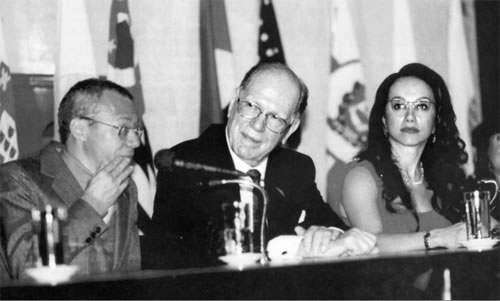 For the second time in one year, LaRouche travels to Moscow for a four-day visit December 10-14 to participate in a scientific conference honoring the memory of Pobisk Kuznetsov who died the previous year. In addition, LaRouche also addresses a seminar hosted by Academician Lvov at the Central Mathematical Economics Institute (CEMI) and met with the Mayor of Moscow, Yuri Luzhkov. The Kuznetsov memorial symposium is titled "Space & Time in the Evolution of the Global System Nature-Society-Man" at which LaRouche speaks on the subject of "Russia's Role in Solving the Global Crisis" [PDF] in which he states: