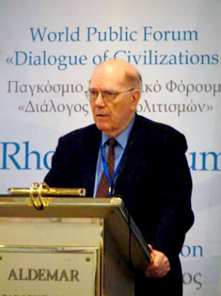 During the dialogue at the conference, Lyndon LaRouche invoked the fight for a new economic order, saying, "go back to 1976 to this experience, where the Non-Aligned nations group, in majority on the initiative of India, actually, adopted a resolution on a just new world economic order." In his speech titled "We Need a New Treaty of Westphalia" [PDF], LaRouche declares that the time for that new international order has come: "We're going into either a period of chaos, which could be a Dark Age, or we're going into a period in which the assumptions of relations among states, especially respecting economic and related kinds of relations, will be changed forever... The decision is on the table: are we going to create a new monetary system, which presumes that a concert of nation-states, sovereign nation-states, will put the existing IMF system into bankruptcy receivership? In other words, governments would take these banking institutions into receivership and manage these bankrupt entities, in such a way as to promote the general welfare."
