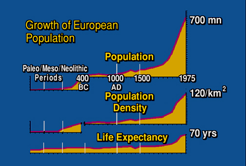 GROWTH OF EUROPEAN POPULATION, POULATION DENSITY,