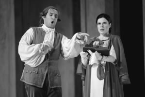 Leporello, Don Giovanni’s obsequious servant, confronts an outraged Donna Elvira with evidence of his master’s infidelity |