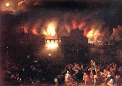 In the Iliad, Agamemnon tells his brother Menelaus, “We are not going to leave a single one of them [the Trojans] alive. . .” Shown: “The Burning of Troy,” by Jan Bruegel the Elder (1621).In Book IV, Agamemnon rouses the spirits of his disheartened brother, when he says: "My dear Menelaus ... we are not going to leave a single one of them alive, down to the babies in their mothers' wombs -- not even they must live. The whole people must be wiped out of existence, and none be left to think of them and shed a tear."