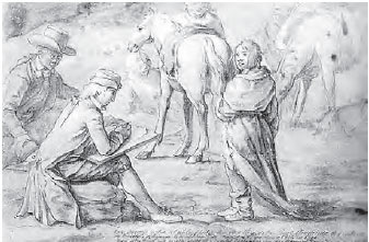 ![]() Jose del Pozo “Self portrait drawing a Patagonian woman” done in 1790- pen & wash on Malaspina expedition. |