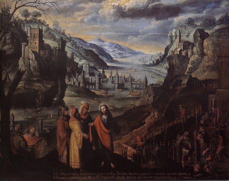 The Native American artist, and son of an Inca nobleman, Diego Quispe Tito (1611-81), from Cuzco, produced some of the best examples of this Northern European Renaissance influence in South America. Folklore about Tito suggested that he traveled across Europe studying at every Renaissance workshop, but the truth was that he stayed in his native Peru and studied mostly Flemish engravings, especially from the Wierix brothers of Antwerp, followers of Albrecht Dürer (1471-1528). Tito could do perfect Netherlandish landscapes with pitched roofs and spires, and bring them to life with local flair by adding Andean townspeople or South American wildlife. Some of these South American painters were so enamored of the Renaissance style, that for their landscapes of the tropics, instead of local tropical foliage, they favored the botony found in European engravings of the Nile River Valley in Egypt.