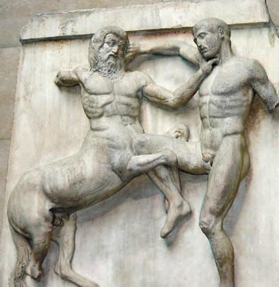 Parthenon Metope: Centaur and Lapith in combat. |