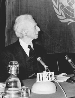 “There is no human being, no, not one, whom I do not hate. There is no being, no, not one, whom I do not wish to see suffering the absolute extremity of mankind,” wrote Lord Bertrand Russell in an autobiographical short story. Russell, shown here at the UN’s Unesco House receiving the 1957 Kalinga Prize, had gulled public opinion into believing him a philanthropist and lover of peace, until Lyndon LaRouche exposed him as “the most evil public figure of the 20th Century.” |