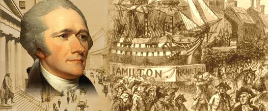 Left: Alexander Hamilton. Right: After New York ratified the Constitution in 1788, New York City celebrated with a parade. Hamilton, the Constitution's champion, was honored by a float representing the federal ship Hamilton. |
