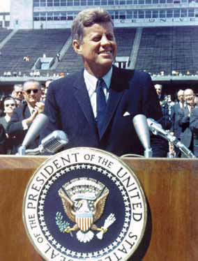 John F. Kennedy one month earlier, at Rice University in Houston, announcing the goal to put a man on the moon. |