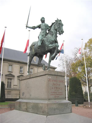 Why celebrate this maid, who, at the age of 17, determined to take charge of the French Army, in order to drive the English out of France, and crown the French Dauphin king? Because Jeanne d'Arc is, in the sense of universal history, a leading figure in establishing the basis for the creation of our own republic, and the nation-state institution as a sovereign body devoted to the general welfare of the population. As a leader, she deserves to be honored by all mankind, of whatever nationality.