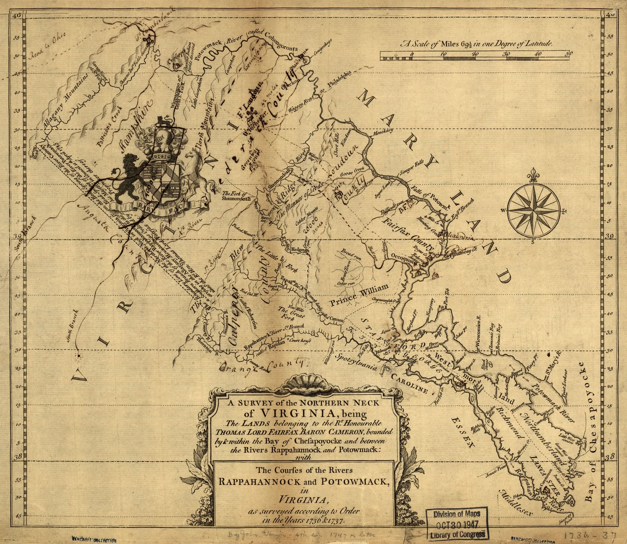 A survey map of the Northern Neck, 1732.
