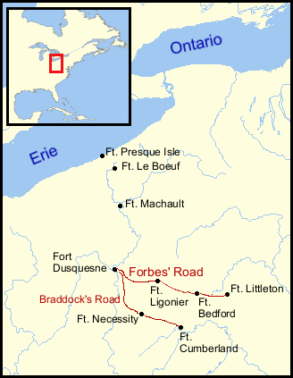 But the investors in Britain's East India Company were eager for the looting opportunities which an empire provided, and they backed the conflict to the hilt. Forbes was a brave and efficient soldier, and he had studied Braddock's letters back to England as well as the tactics of the fatal battle on the Monongahela. Braddock's description of the difficulties posed by his thickly wooded and mountainous route convinced Forbes that he should build a new road straight west through Pennsylvania. Forbes also decided to build a series of fortified supply posts along the way, so that he would be able to retreat to them in case of a defeat, yet still be able to mount an attack at another time.