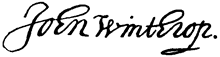 ![]() Above: John Winthrop, Jr.; below: his signature.