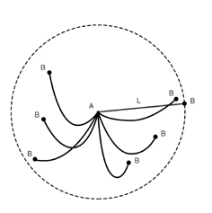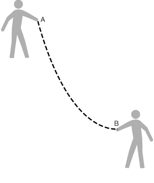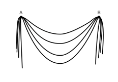 | 6(a) The catenary is the path that maintains an equal force on the lowest point. In the experiment of two people holding a weight by two strings, the catenary is the path person A would have to follow so as not to change the force required to lift the weight, while person B remained stationary. As person A moves away from B, he has to also hold the rope higher to keep the force constant. In other words, the person at A has to move non-uniformly vertically with each horizontal movement, in order to keep the force exerted in lifting the weight unchanged. | ||||||||||||||||||||||||||||||||||||||||||||||||||||||