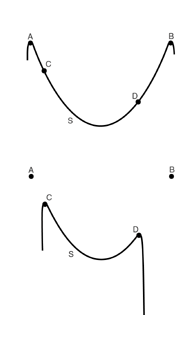 | 2(c) Release catenary AB to points C,D. Every arc of a catenary, is itself a catenary! | ||||||||||||||||||||||||||||||||||||||||||||||||||||||