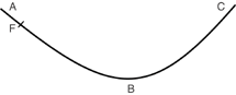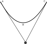 The force exerted at positions A and C of the hanging chain, is the same as if an object whose weight was equal to the weight of the chain hanging between those points, was suspended by threads that were tangent to the catenary at A and C. |