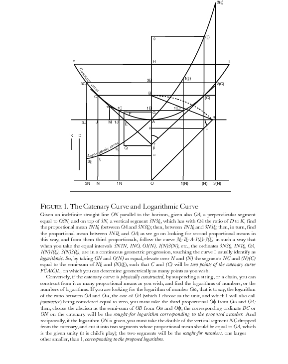 Figure 2: Leibniz' construction of the algebraic powers from the hanging chain
