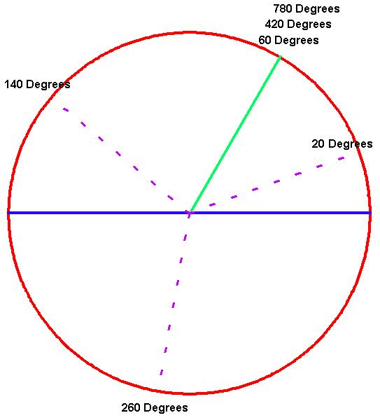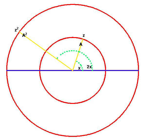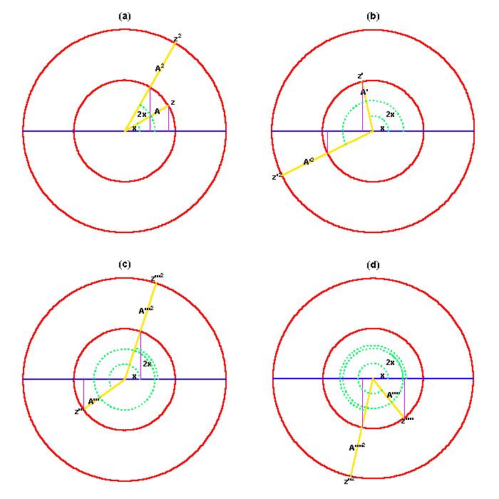 Figure 5: In (a) the lengths of the radii are squared as the angle of rotation doubles.