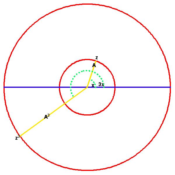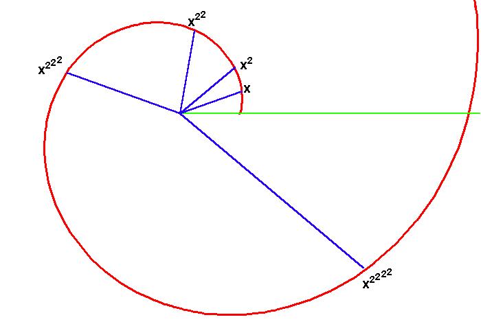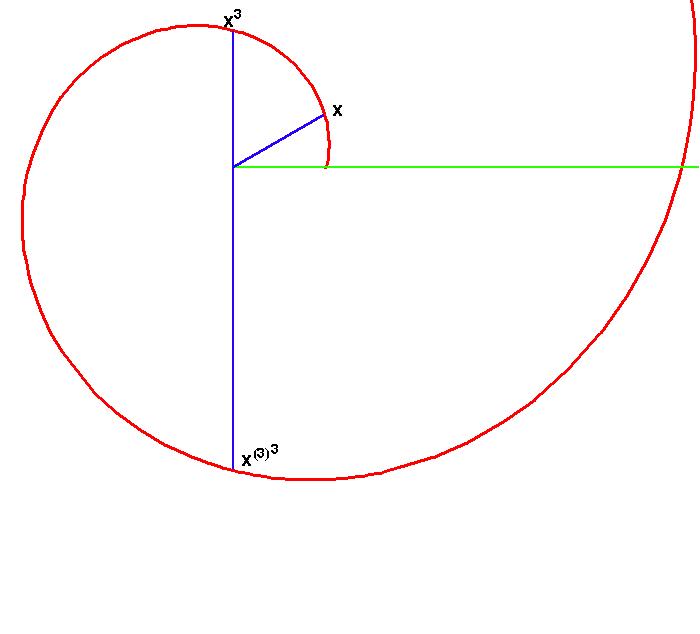 | Figure 1: A succession of algebraic powers is generated by a self-similar spiral. For equal angles of rotation, the lengths of the corresponding radii are increased to the next power. | ||||||||||||||||||||||||||||||||||||||||||||