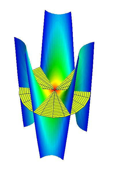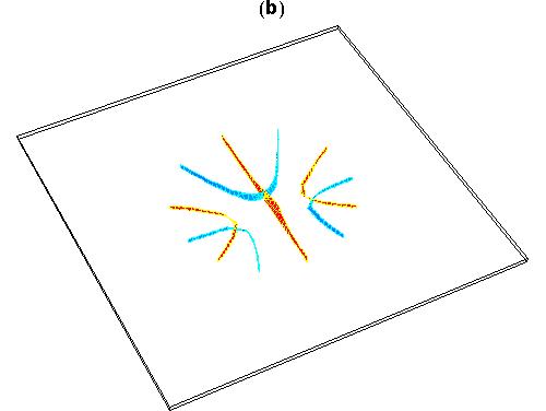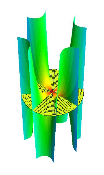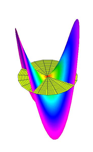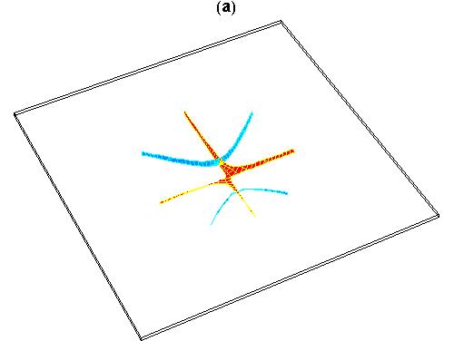 Figure 14: Roots of algebraic equations represented in a Gaussian surface. (a) is the intersection of the surfaces in 13(a) with the flat plane.