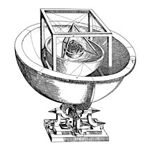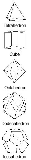 | Johannes Kepler discovered that the ordering of the visible planets correSponded to the ordering achieved by inscribing and circumscribing spheres around the five Platonic solids, in the order depicTed in this illustration from his Mysterium Cosmographicum. |