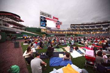 ![]() WNO/Tony Brown Ninteen-thousand fans attended the free Opera in the Outfield opening night Hi-Def simulcast of The Barber of Seville at the baseball stadium of the Washington Nationals. |