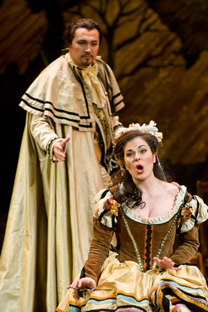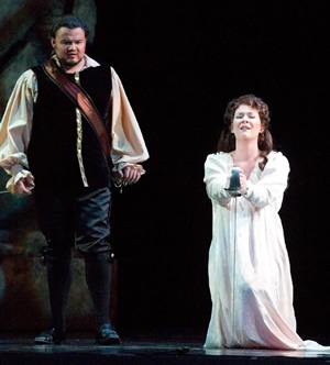 Kelly Kaduce as Donna Elvira and Robert Gierlach* as Don Giovanni. *Michigan Opera Theater performed Don Giovanni with 2 casts, and some of the singers shown here were not in the performance we are reviewing. |