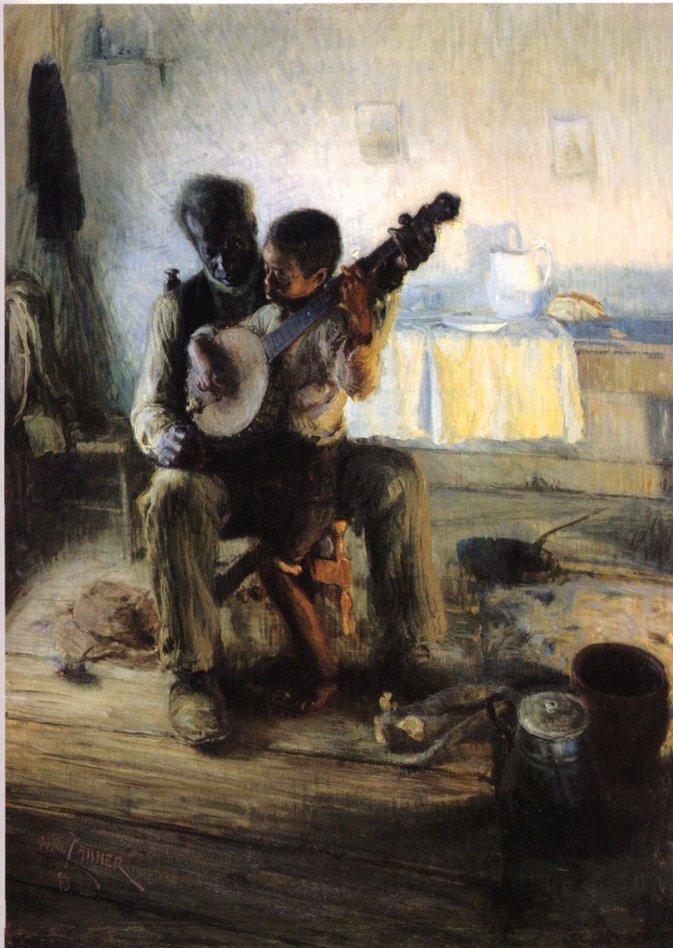 Thirty years after the Emancipation Proclamation, Henry Tanner was asked to speak to the “Congress on Africa” at the 1893 World Columbian Exposition in Chicago about “The Negro in American Art.” This event put him in direct contact with much of the African-American leadership of the period, including Frederick Douglass, W.E.B. Du Bois, Booker T. Washington (already a friend of the family), and the young poet, Paul Laurence Dunbar. Although living in France at the time, Tanner delivered a speech, revealing great insight into the best way to intervene into America’s racist culture. Tanner wanted to counter the popular image of the humiliating, sub-human, and often derisive caricatures of blacks that were so commonly circulated at the time. Tanner would directly take on the stereotypical cliché of blacks and music. (It should be noted that simple rhythms were considered acceptable for blacks, but images of blacks reading, thinking, or educating their children were off limits).