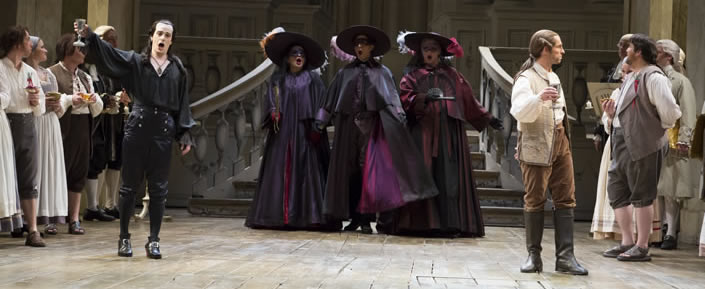The traditional Don Giovanni setting employed by HGO, designed by Göran Järvefelt, goes back to 1986, and has been faithfully reproduced by his successors, Harry Silverstein and Carl Friedrich Oberle. The mostly clean stage, with ample room for spacing, works brilliantly, with no distraction from the action on the stage.