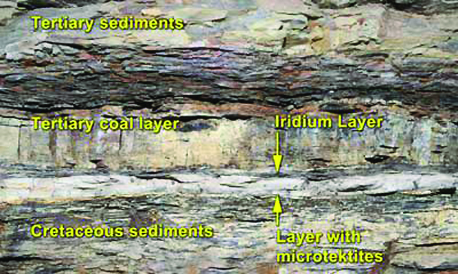 NASA The geological transformation at the boundary between the Cretaceous and Tertiary periods (K-T boundary) is very sharp, and it is marked by a layer of iridium, thought to be extraterrestrial in origin. |