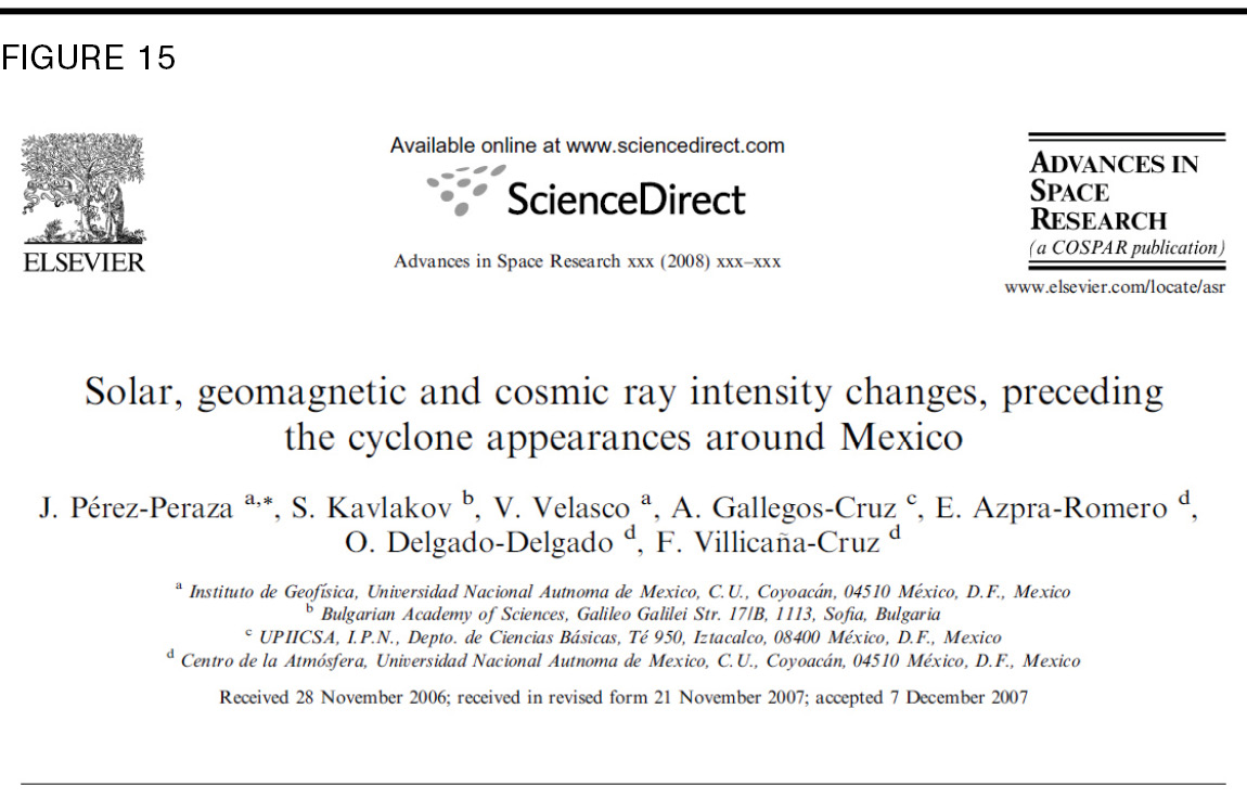 Figure 15: There's one other study to cite in the process, which is a paper written by scientists in Mexico, showing that there's a clear relationship between the variations in cosmic ray flux, and the formation of cyclones and hurricanes, and their strength, their intensity. So, another pretty fascinating relationship.
