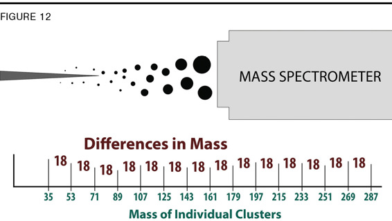 And what they measured was that the mass of the clusters in their chamber, under the effect of this ionization—in this case, electrically induced ionization—they got clear, discrete jumps in the increase of the mass of the clusters. And those jumps were of the atomic mass of 18, which is the mass of a water molecule. So they were able to directly measure the increase of the mass of these clusters, in steps which were, in effect, the measurement of each water molecule jumping onto the cluster. And they showed that when you increase the ionization, now you see an increase in number of water molecules condensing, onto larger and larger clusters, growing clusters.