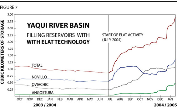 And you can see: On the left here, going from toward the end of 2003, into the beginning of 2004, we have the reservoir levels as they were, without the influence of these weather control systems, these ELAT systems. And then, in July 2004, they began to utilize these systems in the region, with the particular goal of filling these reservoirs. And you can see rather clearly, timed with the beginning utilization of these systems, the level of the reservoirs began to rise in all three of them, and in the total.