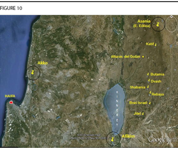 So, unfortunately, they lost support for the activity in Mexico. This particular grouping then went over to Israel, found support in Israel, and from 2011 to 2013, fulfilled a contract to develop three stations (Figure 10). See the push pins, with the black circles around them. So, the top right, middle left, bottom center there—they built three stations, targeted to fill seven reservoirs in the Golan Heights region. The seven reservoirs are named there, along the righthand side.8