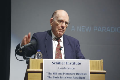 Lyndon LaRouche wrote of the “Spiritual Imperative for the Conquest of Space.” As a result of the unique creativity of mankind, discoveries are made that enable man to go into space, and which benefit the entire world. Here LaRouche addresses a conference in Sterling, Va. in 2013 on the implications of space science for a new paradigm for mankind. |