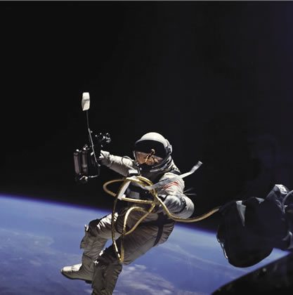 “It is part of our heritage as children of this planet to seek out other worlds, to grow and to mature with our expanded capabilities into degrees of freedom and independence which would make present-day societies appear like the incredible confinements of medieval communities . . .” During the Gemini 4 mission on June 3, 1965, Ed White became the first American to conduct a spacewalk. |