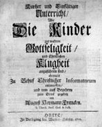 What follows, are the first fruits of that inspiration. Francke and LeibnizAugust Hermann Francke was born in Lubeck, in 1663; his father was a juridical counsellor in the court of Duke Ernst the Pious of Saxe-Gotha. Gotha, where Francke spent most of his youth, was an early center of the scientific and ecumenical movement in Germany which emerged in the wake of the unimaginable catastrophe of the bloody religious conflicts of the Thirty Years War.2 The center of this movementof which the towering figure is Leibnizlater shifts to Halle, and then still later to Göttingen. Berlin was also built up as a scientific center in the period following the Thirty Years War, and as a bridge between Europe and Russia. The spreading, ecumenical spirit of Halle is the environment which later nurtured Lessing and Moses Mendelssohn, among others.