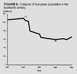 what came before and aftervery sudden growth of population and population density from A.C.E. 800 to A.C.E. 1200, an increase of seventy percent. The impact of the Islamic Renaissance upon this region was followed by the Neo-Confucian Chinese Renaissance of the eleventh and twelfth centuries. Now, each graph, no matter of what region, shows nearly the same pattern of dramatic increase, dwarfing whatever came before, starting in the period A.C.E. 1450-1500. This is the impact on the entire human species of the Golden Renaissance of civilization in Europe. Here again, you see its responsibility for transforming a human population of about 400 million people worldwide, to a population of 5.3 billion people. Those 5.3 billion peoples lives exist as a result of the scientific and technological progress unleashed by that renaissance. The European Renaissance was all the more remarkable because, in Europe itself, it followed the devastating effects of the spread of usury in the thirteenth and fourteenth centuries (See: Figure 6)collapse of banks, destruction of cities, massive spread of plague, and collapse