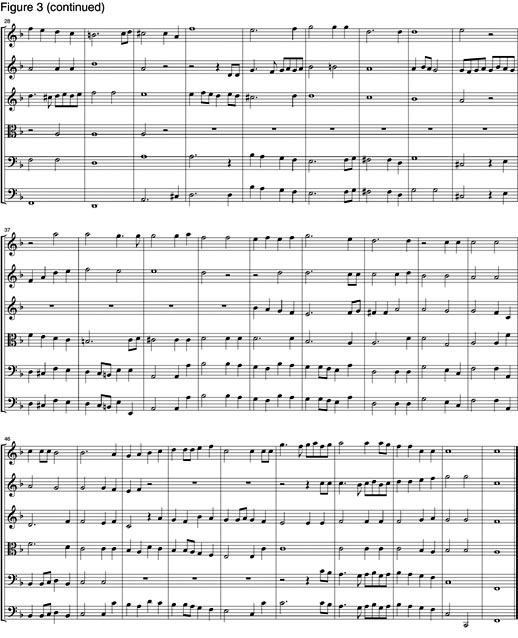 Let's hear the beginning of a piece by Rameau himself, which he uses as an example in his famous Treatise on Harmony of 1722. Rameau calls this a fugue, but it is so, at best, only in a formal sense. And then, let's compare that with the opening of a real fugue, Bach's B-minor fugue from The Well-Tempered Clavier, written in the same year, and which Beethoven later studied particularly carefully when he was working on his Hammerklavier sonata. I am playing the Rameau fugue on a computer, which is perhaps appropriate to the quality of his method [ Figure 3: page1, page2].
