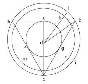 Once this is done, then one can derive a value for π . If db = 60, then ed = 30, eb = √2700, and the circumference of the triangle, which is equal to the circumference of the isoperimetric circle lmn, is 6 √2700. Consequently, ek = √675 and dl = (5/4) √1575, the diameter of the isoperimetric circle 2 × dl = 2½ √1575. One then obtains the value of π by dividing the circumference 6 √2700 by the diameter 2½ √1575. The result is 3.1423376. Having done this, Cusanus writes: True, that is not the precise value, but it is neither larger nor smaller by a minute, or a specifiable fraction of a minute. And so one cannot know by how much it diverges from ultimate precision, since it is not reachable with a usual number. And therefore this error can also not be removed, since it is only comprehensible through a higher insight and by no means through a visible attempt. From that alone you can now know, that only in the domain inaccessible to our knowledge, will a more precise value be reached. I have not found that this realization has been passed along until now.In this passage, Cusanus self-consciously identifies the unique discovery he has made of a new type of number domain. As Lyndon LaRouche has pointed out, the Greeks had discovered incommensurability. They knew, for instance, that the diagonal of a square was incommensurable with the side. Archimedes believed that π was similarly an irrational magnitude. But what Cusanus established is that, whereas the relationship of the diagonal to the side of the square is irrational, the relationship of the circle to the square is transcendental. As LaRouche writes in Appendix A: What Cusanus did was to recognize that π is not, ontologically, an irrational, but a number of a higher ontological type than irrationals, of a higher species. LaRouche continues in the same location: Cusanus recognized that circular action: (a) could not be defined ontologically within the implicitly axiomatic formalities of Greek mathematics, since the circular perimeter, the locus of that action, was an absolute mathematical discontinuity between the two transfinite series, inscribed and circumscribed, of polygonal processes. (b) Moreover, since those polygonal processes themselves were externally bounded by circular constructions, the axiomatic formalities implicitly underlying Archimedes constructions could not access efficiently the ontological domain of circular action, but circular action could determine, and thus access efficiently the processes of the polygonal constructions domain. (c) Therefore, we must discard the implied set of axioms of Archimedes use of the Euclidean domain, and replace those with the axiomatic quality (Platonic hypothesis) of universal circular action (later, universal least action). On Learned IgnoranceAfter having thus superseded Archimedes by discarding his Euclidian axiomatic assumptions, Cusanus identifies the source of his discovery as his learned ignorance: The measure with which man strives for the inquiry of truth has no rational proportion to Truth itself, and consequently, the person who is contented this side of precision does not perceive the error. And therein do men differentiate themselves: These boast to have advanced to the complete precision, whose unattainability the wise recognize, so that those are the wiser, who know of their ignorance. The concluding section of On the Quadrature of the Circle concentrates upon bringing out the theological implications of this discovery, which implications, as emphasized at the beginning of this article, are actually, self-reflexively, the source of the scientific breakthrough. As Cusanus first made clear in On Learned Ignorance, the relationship of the circle to the polygon is a metaphor for the relationship between God and His creation, and in particular between God and man, who is created in His image. Cusanus argues that mathematical thinking has its seat in the true powers of the mind. As a result, one can ascend from the study of finite mathematical forms to infinite mathematical forms and finally to an intellectual vision of the First Form, to the Absolute Form of forms. Thus, just as the circles area remains incommensurable to any area of a non-circle, so the infinite power of God is incommensurable to any non-infinite. As Cusanus writes: Thus, just as the circle is a figurative perfection, comprehending every possible perfection of figures in itself, and just as its surface embraces the surfaces of all figures and has nothing in common with any other figure, rather is in itself perfectly simple and unique, so is absolute eternity the Form of all forms, which in itself encloses the perfection, and so its omnipotence encompasses all power of the forms, of every kind, but without having a commonality with any other form.Cusanus then makes an explicit comparison between the circle and the triune nature of God: And just as the circular figure possesses, in the property of having neither beginning nor end, a certain similarity with eternity, and represents in its area, wherein it encloses the areas of all figures, a certain figure of omnipotence, and represents in the close connection with which it unites circumference and area, in a manner of speaking, a figure of the most loving and infinite connection, so we view in the divine essence the eternity, which in itself has omnipotence, and in both the infinite union. In eternity we view the beginning without beginning, and just this we name the paternal first cause. In the omnipotence, which comes from the beginning without beginning, we view the unbounded beginning from the beginning. In the infinite connection we view the most loving union of the beginning without beginning and of the beginning from the beginning. Namely in that we see eternity in the divine essence we view the Father. In that we see the power of eternity in the same essence, which cannot be other than infinite, since it is the power of eternityof t