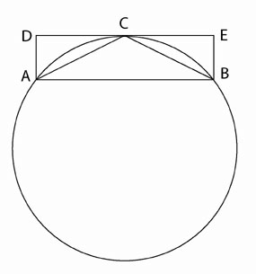 Cusanus is raising an issue which has historically divided the scientific community. What he is pointing to, is the existence of a type of angle other than a rectilinear angle: the incidental angle of a segment, i.e., the angle inside a circle between the circumference and the line which cuts it off. This is referred to in Euclid in only one location, Book III, Proposition 16, as the angle of the semicircle. The other angle which Cusanus will refer to in On the Quadrature of the Circle is the contingent or cornicular (horn-like) angle [See Figure 9]. This is the angle between the circumference of a circle and the tangent. It is referred to in the same location in Euclid as the remaining angle. Euclids Book III, Proposition 16 reads as follows: