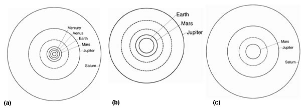 Here, Kepler pointed out that the three radically different systems shared a common error, the embedded error of the Aristotle. All three imposed, a priori, the mathematics of perfect circlesand hence, assumed the reality of uniform motionon the physical universe: The three opinions are for all practical purposes equivalent to a hairs breadth, and produce the same results, he wrote, in the introduction to The New Astronomy. Consequently, it is impossible to tell which of the three opinions is true, says Kepler. The common error in all three opinions is, that they assume a pre-existing mathematical structure (perfect circles), and then force the physical observations to conform to that mathematical idea. As Copernicus puts it in his Revolutions of the Heavenly Spheres: The movement of the celestial bodies is regular, circular, and everlastingor else compounded of circular movements. But, the observed motions of the planets are not regular, so why assume a priori that these motions must derive from circles? Kepler took a completely different, revolutionary approach, one based on Plato and Cusa. Rather than force the observations to conform to pre-existing mathematical assumptions, he sought the physical reason for the observed non-uniform motion, and then conformed his mathematics to that physical hypothesis: Indeed, all things are so interconnected, involved, and intertwined with one another that after trying many different approaches to the reform of astronomical calculations, some well trodden by the ancients and others constructed in emulation of them and by their example, none other could succeed than the one founded upon the motions physical causes themselves, which I establish in this work.What was so frightening about the planets having non-uniform motion, that it kept Aristotles grip over three very different types of thinkers, such as Ptolemy, Brahe, and Copernicus? Again, Cusa gives the answer. If the planets were moving uniformly about the sun in perfect circles, then each planets motion would be governed by an unchanging principle; that is, its speed would be constant, it would always be the same distance from the sun (or Earth), and its direction would always be at a right angle to a line connecting the planet to the sun [See Figure 5(a)]. However, if the planets were moving non-uniformly, the speed and direction would be constantly changing [See Figure 5(b)].