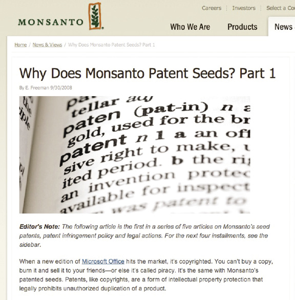 Monsanto has a case to be heard Feb. 19 in the Supreme Court against Indiana farmer Vernon Hugh Bowman, claiming that he infringed on Monsanto’s right to its “invention” of a certain soybean seed, because Bowman bought and planted seed from a grain elevator, which had obtained it in a commodity purchase from another farmer, who originally planted Monsanto seed. The “I win, you lose” implications are clear. Monsanto has reportedly filed suit and ruined farmers in 27 states; won 72 claims, with recorded judgments of $23 million against farmers.