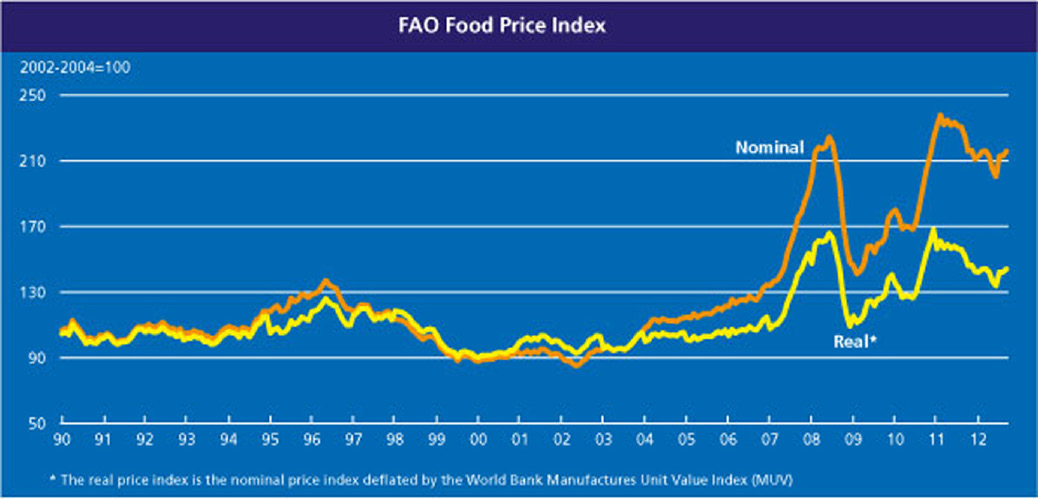 As of mid-February 2013, the U.S. National Weather Service foresees no heavy rains or snowfall on the way, sufficient to relieve the drought in the North American farmbelt. The drought jeopardizes Winter wheat, reduces the soil moisture needed for corn and soy, worsens the acute hay and pasture scarcity, and threatens the entire livestock feed chain (Figure 1). There are no food reserves. This situation constitutes a world disaster threat. However, the impact of another “unlucky” crop season does not define the problem. Even if miracle weather now ensues, the crisis remains.