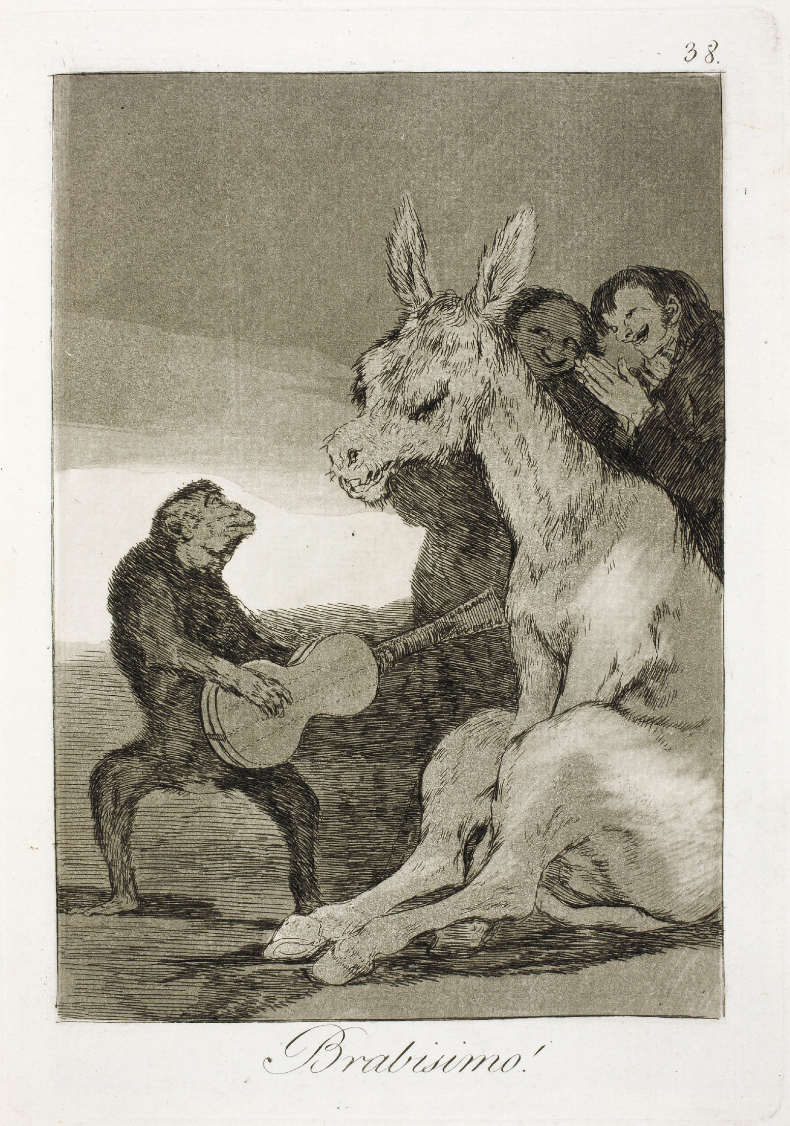 ![]() View full size Bravo! Capricho no. 38, which Goya captions: “If ears were all that were needed to appreciate it, no one could listen more intelligently; but it is to be feared that he is applauding what is soundless.” |