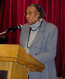 Hushed and BashfulWhen people heard Amelia speak, they changed. They reacted like the mockin-bird in Dunbars poem; they hushed and turned bashful. People were rivetted, hanging on every word she said, crouching in to hear better, though she wasnt quiet, despite her age (90-something!). In the face of the fear and cowardice of her audience, of great controversy, of having venues cancelled at the last minute, in the face of poor treatment of the LaRouche organizers who had arranged the events, she calmly praised LaRouche and the Schiller Institute. When I first met LaRouches organization, they told me about their plans to develop Africa and their plans to attack the drug problem in the cities, and I thought Martin Luther King would have liked that. I asked people if they knew of Lyndon LaRouche: Well, I heard.... Well, I heard.... they would say. Then she paused, looking straight at the audience, and continued, all these people had heard about Lyndon LaRouche, and not one person knew a thing about him! Then she addressed their fear and their littleness by telling them about the march across the Edmund Pettus Bridge on March 7, 1965, Bloody Sunday, where she was beaten and could have died. When her talk elicited the excited and venomous declaration, by a youth, that perhaps we should take up arms to fight the system from the outside, she talked about David and Goliath, again discussing how one overcomes fear. Without belittling him, she pointed out that his response was a fearful one. Without becoming angry, he calmed down and became more reflective.