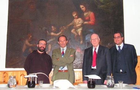 ![]() The last picture is instead taken at the monastery of Segni, Italy, and shows the Cappuccino monk in charge of the monastery, Nino Galloni (economist) who organized the event, Lyndon LaRouche and a friend of Galloni's. |