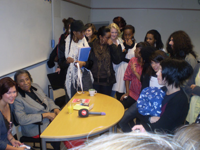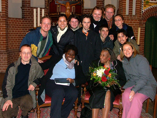 Mrs. Robinson poses with members of the LaRouche Youth Movement after one of her meetings in Berlin. In Germany, she also addressed youth, African immigrants, and events sponsored by the Schiller Institute. |