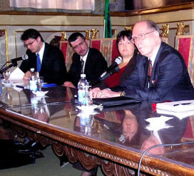 Tom Gillesberg from the Danish Schiller Instituttet then gave a speech to the delegates, portraying the past two years of activities of the LaRouche Movement in Denmark, from the participation in election campaigns, parliamentary hearings on the banking sector, to the campaigns for maglev systems connecting Denmark with Germany, for nuclear power, to the publication of the Institute's magazine Prometeo—which with its 60,000 printed copies has become a real political institution in Denmark. Gillesberg added a passionate call on Germany to free itself from the Maastricht Treaty straitjacket and become the nation of poets and composers, of engineers, once again that will play its crucial role in the development of Eurasia.